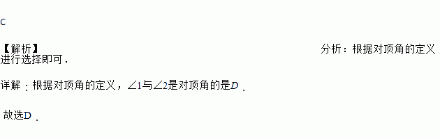 下列图形中,∠1与∠2是对顶角的是( )