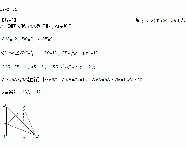 在直角梯形ABCD中,AB∥CD,∠DAB=90°,AB=12,DC=7,cos∠ABC=