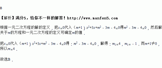 A. 4或-1 B. 4 C. -1 D. -4或-1