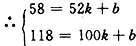 直线过(50,58),(100,118)两点
