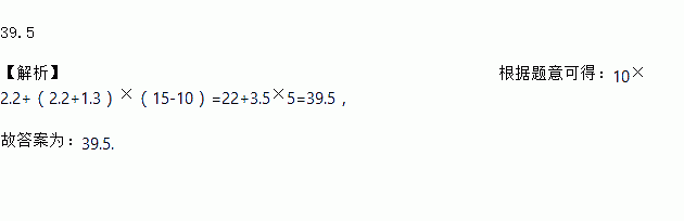 为了鼓励居民节约用水,某自来水公司采取分段计费,每月每户用水不超过10吨,每吨2.2元;超过10吨的部分,每吨加收1.3元.小明家4月份用水15吨,应交水费_____元.
