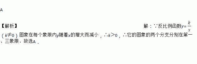 图像在每个象限内y随着x的增大而减小,那么它的图像的两个分支分别在( )