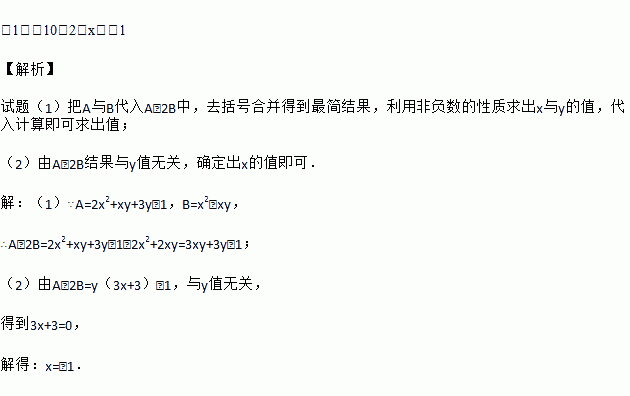 (2)若A-2B的值与y的值无关,求x的值.