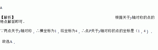 点A(-1,4)关于y轴对称的点的坐标为( )