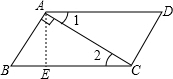 (1)填空:①∠DAB+∠B=______度; ②∠2=______度;