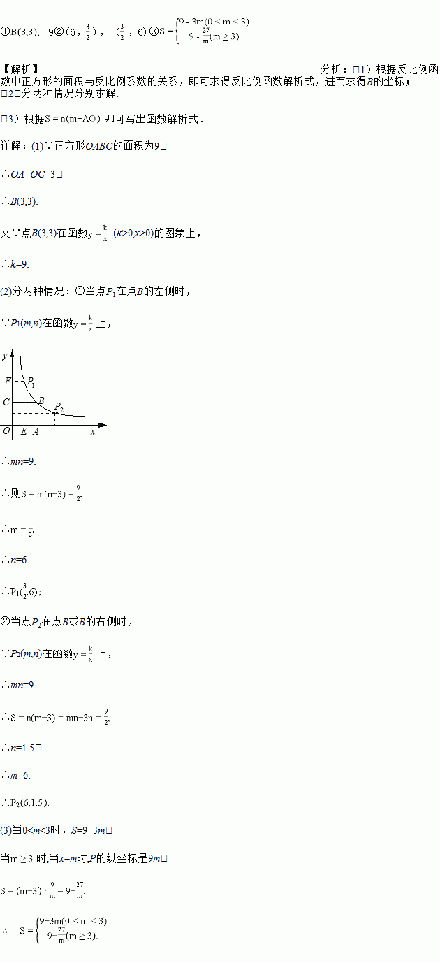 (k>0,x>0)的图象上任意一点,过P分别作x轴、y轴的垂线,垂足为E、F,设矩形OEPF在正方形OABC以外的部分的面积为S.