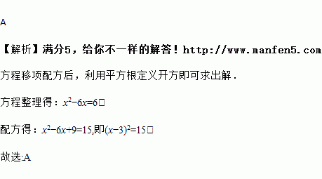 A. (x﹣3)2=15 B. (x﹣3)2=3