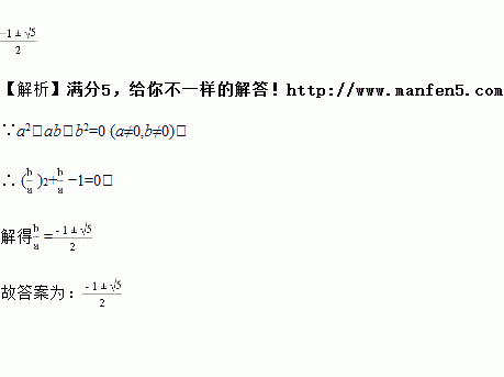 若a2+ab﹣b2=0且ab≠0,则的值为 。