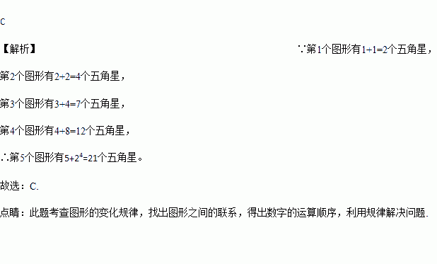 观察下列图形,它们是按一定规律排列,依照此规律,第5个图形有( )个五角星.
