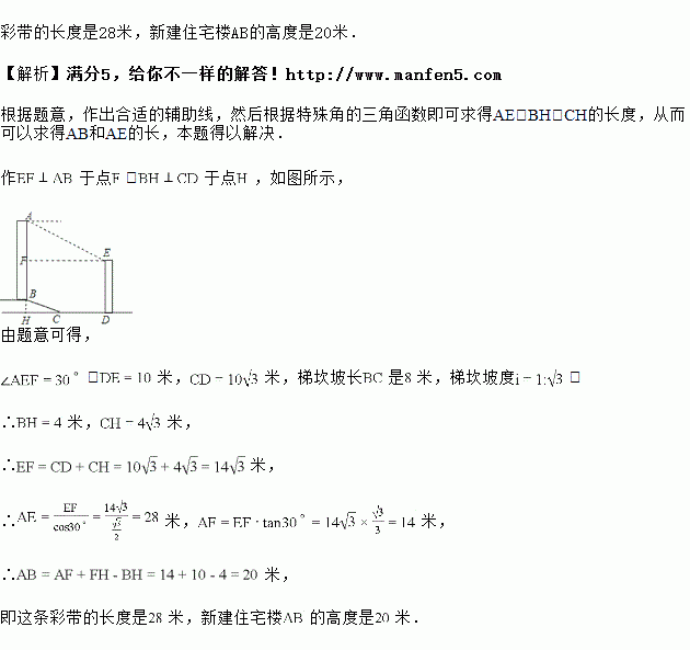 ,春节期间居委会想在之间悬挂一条彩带来烘托节日气氛,求这条彩带的长度和新建住宅楼![]()