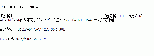已知a+b=6,ab=3,求a2+b2和(a-b)2的值.