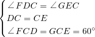 ∴∠FCG=180°-∠ACB-∠DCE=60°,