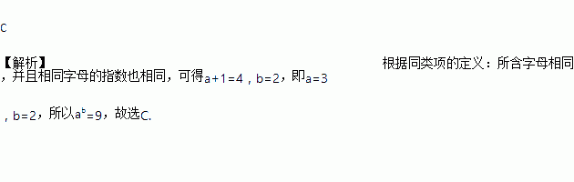 如果单项式xa+1y2与2x4yb是同类项,那么ab的结果是( )