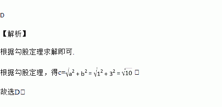 在Rt△ABC中,已知其两条直角边长a=1,b=3,那么斜边c的长为( )