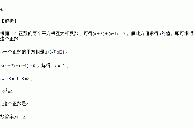 一个正数的平方根是a+3和a-1,则这个正数是_________