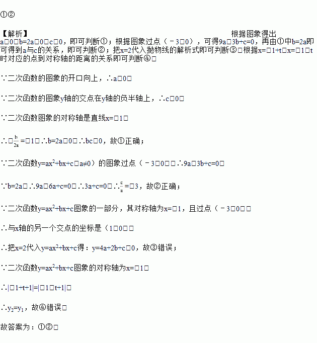 如图,已知二次函数y=ax2+bx+c(a≠0)的图象的一部分,其对称轴为x=﹣1,且过点(﹣3,0),下列说法:①bc<0;②
