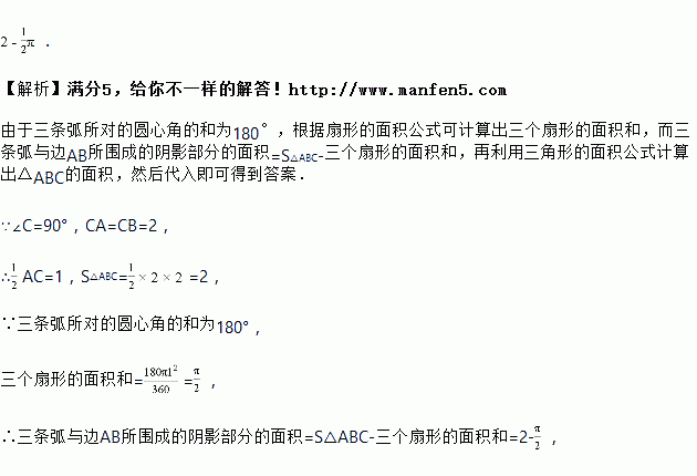 如图,在中,,,求分别以、、为圆心,以为半径画弧,三条弧与边所围成的阴影部分的面积.