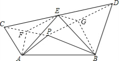 分析:如图,作辅助线,构造全等三角形,证明EA=EB;借助全等三角形的性质及三角形的内角和定理等知识,计算∠AEB的度数问题即可解决.