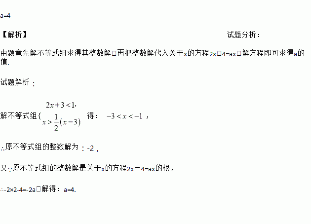 若不等式组的整数解是关于x的方程2x-4=ax的根,求a的值.