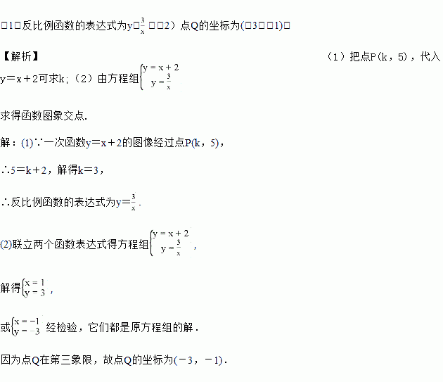 (2)若点Q是上述一次函数与反比例函数图像在第三象限的交点,求点Q的坐标.