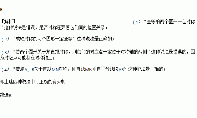 (4)若点A、B关于直线MN对称,则直线MN垂直平分线段AB.