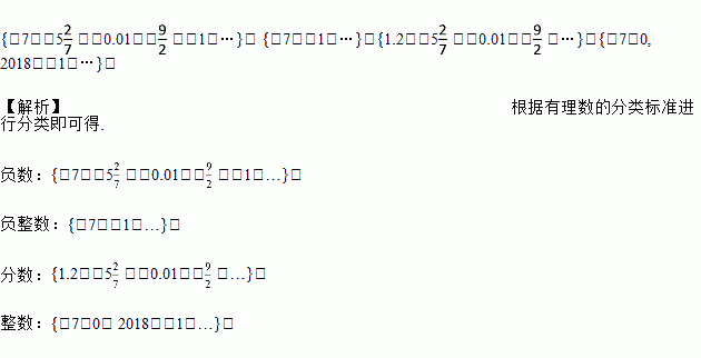 把下列各数填在相应的大括号内:1.2,-7,0,-5,-0.01,-,2018,-1.