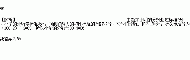 一次考试中以某个分数为标准,超过记为正,不足记为负,小明的分数记为”+5”, 小华的分数记为”-3”,两人的分数之和是180分,小华考了______分.