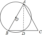 分析:连接AD,由AB是⊙O的直径,即可推出AD⊥BC,再由BD=CD,即可推出AD为BC的中垂线,即可推出AB=AC.