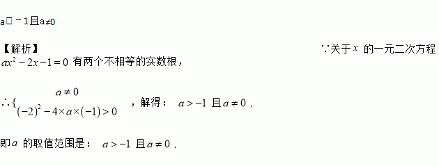 已知关于x的一元二次方程ax2﹣2x﹣1=0有两个不相等的实数根,则a的取值范围是__________