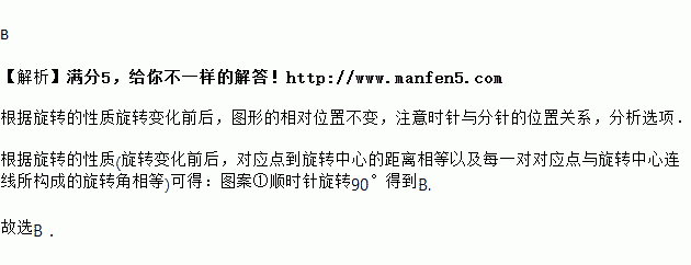下面、、、四个图形中的哪个图案可以通过旋转图案①得到( )