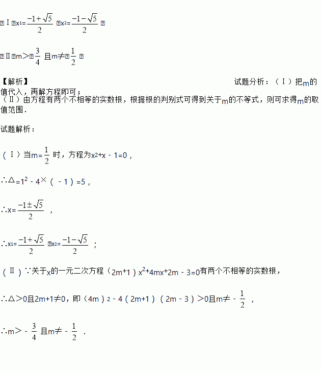 (Ⅱ)若方程有两个不相等的实数根,求实数m的取值范围;