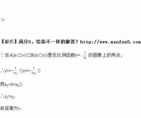 设有反比例函数,(,),(,)为图象上的两点,若,则____ (填“>”、“<”或“=”)