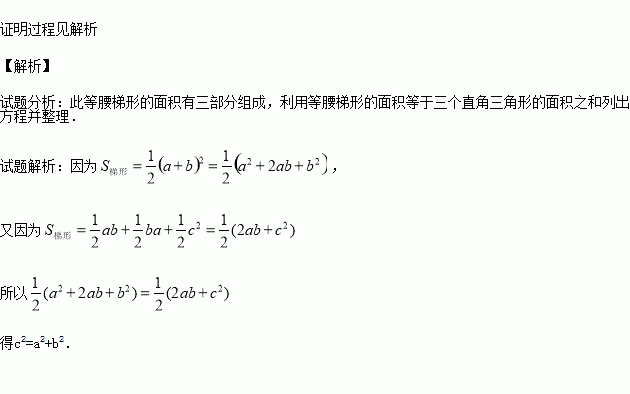 美国第二十届总统加菲尔德也曾经给出了勾股定理的一种证明方法,如图,他用两个全等的直角三角形和一个等腰直角三角形拼出了一个直角梯形,请你利用此图形验证勾股定理.