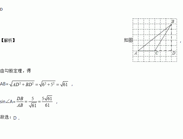 如图,△ABC的三个顶点都在正方形网格的格点上,则sin∠A的值为( )