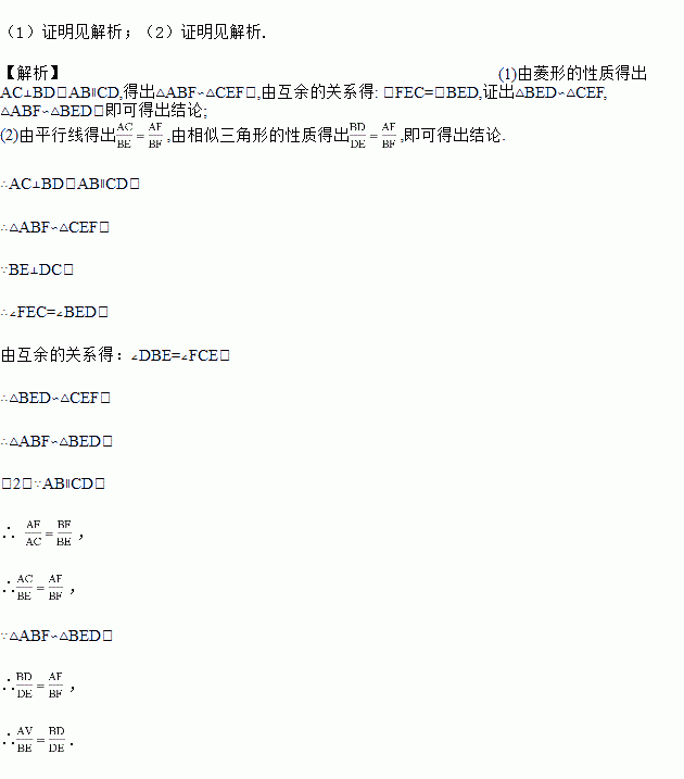 已知:如图6,菱形ABCD,对角线AC、BD交于点O,BE⊥DC,垂足为E,交AC于点F.