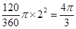 圆心角是120°,半径为2的扇形的面积为( ).