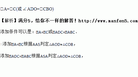 如图,AB、CD相交于点O,AD=CB,请你补充一个条件,使得△AOD≌△COB,你补充的条件是______ .