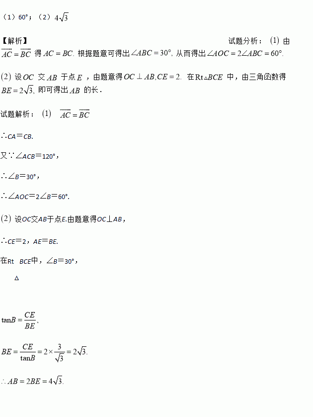 如图,在⊙O中,点C为弧AB的中点,∠ACB=120°.