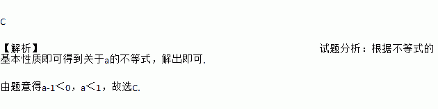 若的解集为x>1,那么a的取值范围是( )![]()