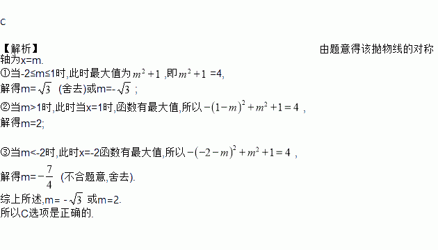 当﹣2≤x≤1时,二次函数y=﹣(x﹣m)2+m2+1有最大值4,则实数m的值为( )