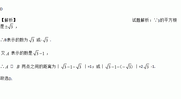 数轴上, 两点, 表示的数是, 表示的数是的平方根,则, 两点之间的距离为( ).
