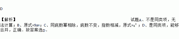 A. 2a+3b=5ab B. (3a3)2=6a6 C. a6÷a2=a3 D. ﹣3a+2a=﹣a