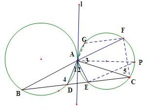 于是∠AEP=90°,从而AP是⊙AEC的切线,即二圆相切于点A;