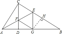 (2)作GH⊥BC于点H,即可推出S△GEB和S菱形CFGE,再通过△ABC和△GEB的相似比推出其面积比,CE:GB=1:2,即可得S△ABC=4S△GEB=4•BE•GH•