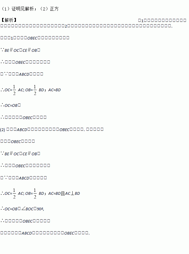 (2)当四边形ABCD是 形时,四边形OBEC是正方形.