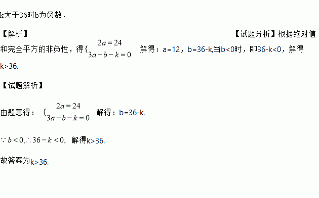 |2a-24|+(3a-b-k)2=0,那么k取什么值时,b为负数.