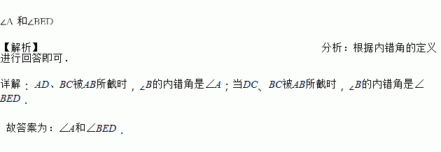 如图,AD、BC分别被AB、DC所截,则的内错角是_________.