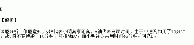 小明到离家900米的春晖超市卖水果,从家中到超市走了20分钟,在超市购物用了10分钟,然后用15分钟返回家中,下列图形中表示小明离家的时间与距离之间的关系是( )