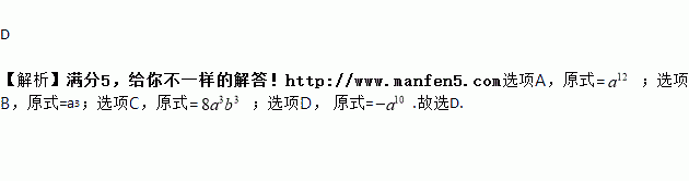 A. (a4)3=a7 B. a6÷a3=a2 C. (2ab)3=6a3b3 D. ﹣a5•a5=﹣a10