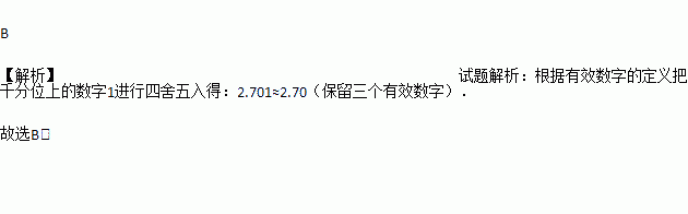 用四舍五入法,把数2.701保留三个有效数字,得到的近似数是( )